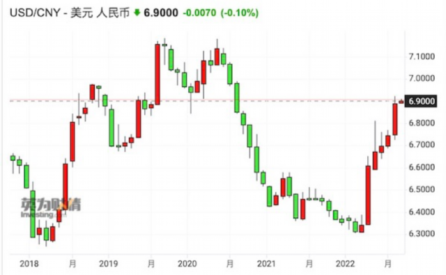 2022年9月15日消息:今日人民币跌破7元关口,在2018年8月,即中美贸易摩擦升级之际,人民币对美元破“7”并触及11年低位,这也被认为是中国央行放弃“守7”后顺势而为的默许之举。